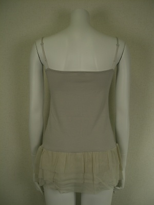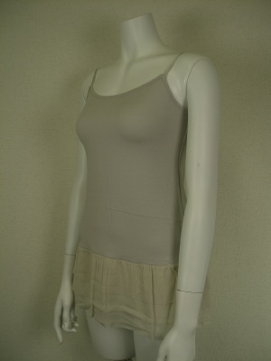 裾のフリルが特徴のキャミ。たとえば普通丈のカットソーを組み合わせれば裾からフリルをのぞかせて着ることができます