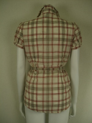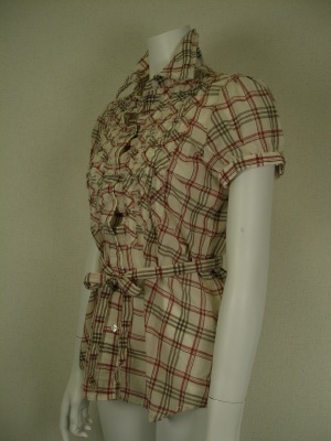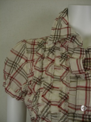 キャサリンハーネルのパフスリーブシャツ。衿にはワイヤー入り。シワ加工なので洗いざらしでOK
