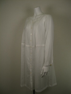オーバーサイズのシャツブラウスです。全体に透け感があるので、重ね着に最適。ウエストを絞りで調節できます。