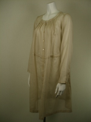 オーバーサイズのシャツブラウスです。全体に透け感があるので、重ね着に最適。ウエストを絞りで調節できます。