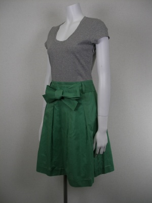 トップは綿、スカートは綿・リヨセル・ポリウレタンの異素材使いワンピース。ベルトは外せません。スカート部分のみ裏地付き(ポリエステル100%)
