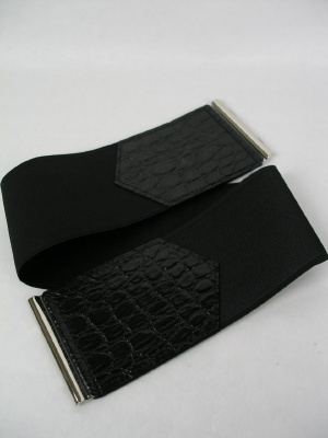 フロント部分は型押しレザー、8cm幅のゴムベルト。ウエストマークに!