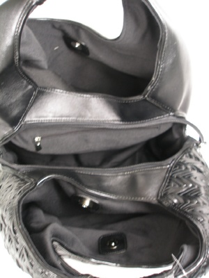 ファスナー付きで内側にはポケットが3つ、その外側にも磁気ホック付き。とても使い勝手の良いバッグです。