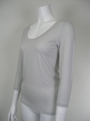 柔らかく滑らかで、とてもストレッチの効いた素材。かさばらないので重ね着のインナーに最適。