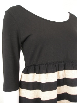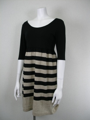 トップは綿100%、スカートは綿95%・ポリウレタン5%、裏地はポリエステル。1枚でサマになる異素材使いのワンピース。
