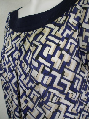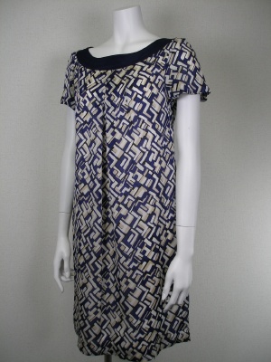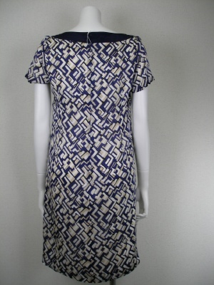 柄部分はシルク100%、無地部分はトリアセテート63%・ポリエステル37%、裏地はキュプラ。広がりすぎないストンとしたシルエットのワンピースです。
