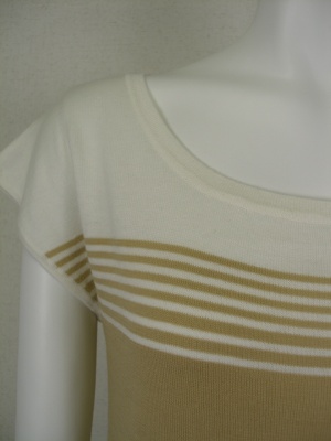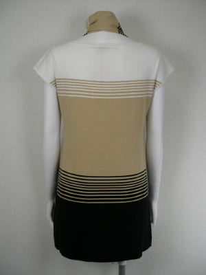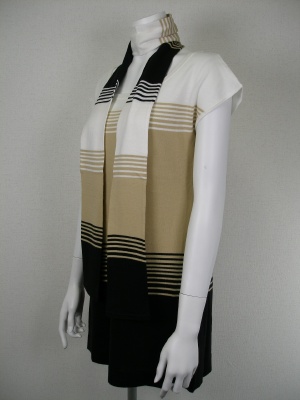 シックなボーダーのニットチュニック、同素材のストールもセットです。オフホワイト×ベージュ×黒の配色、裏地無し。