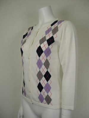コットン100%でサラリとした肌触りのニットカーディガン。同じ柄の半袖もございます。