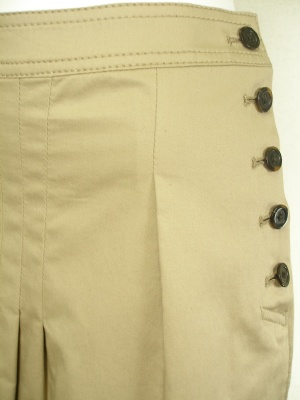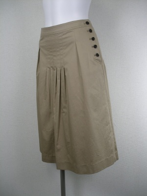 綿ストレッチ(麻混)のスカート。前後にタックを寄せ少しふくらむデザインですが、横はスッキリしていますのでボリュームが出すぎません。裏地付き。