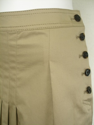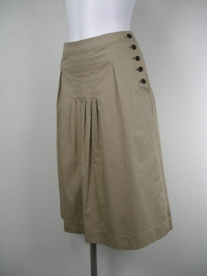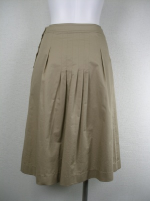 綿ストレッチ(麻混)のスカート。前後にタックを寄せ少しふくらむデザインですが、横はスッキリしていますのでボリュームが出すぎません。裏地付き。
