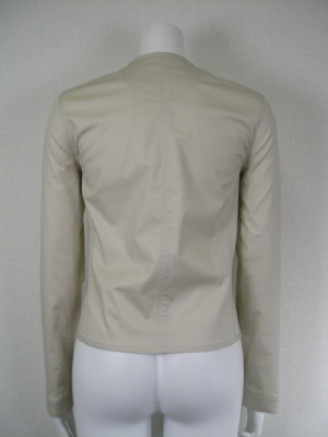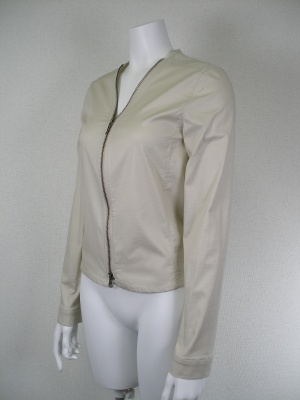 ジップ使いが新鮮な、綿ストレッチの薄手ジャケット。細身ですが後ろはシェイプさせすぎないブルゾンのようなシルエット。