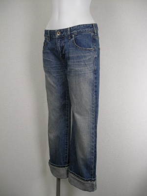 ややゆるめのストレート、ボーイフレンドデニムです。裾はロールアップすると可愛い。ノンストレッチでデニムらしい風合い。