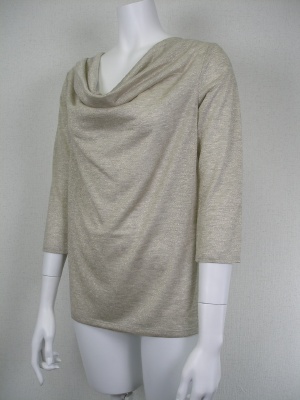 細かいゴールドのストライプで全体的にキラキラしますが、派手すぎず上品な印象です。柔らかくしなやかな素材で、手洗いできます。