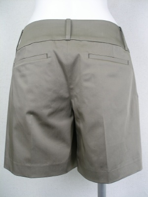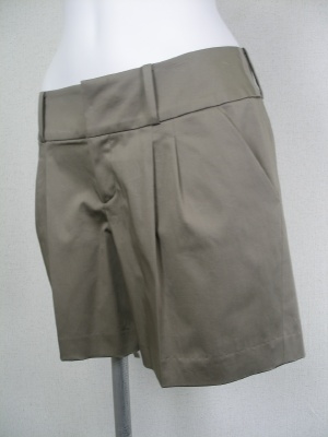 綿ストレッチのショートパンツ。タック入りで裾に向かってやや広がるデザイン。裏地無し。