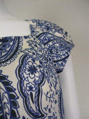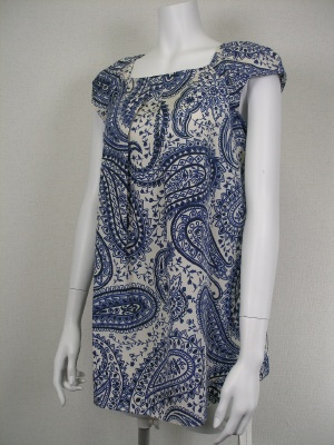 シルク・コットンの上質素材で、大きなペイズリー柄。前後にタックを寄せたふんわりAラインのチュニックです。