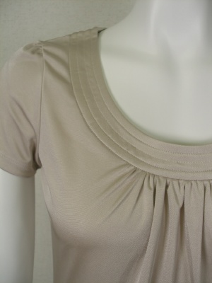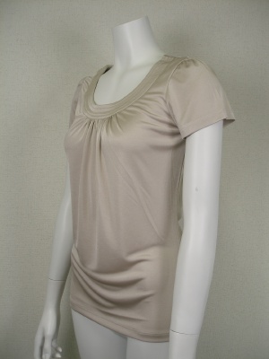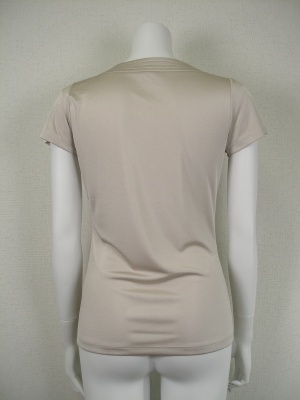 光沢のあるポリエステル素材で、シワになりません。1枚で着ても透けづらく、ジャケットのインナーとしても使いやすいカットソーです。