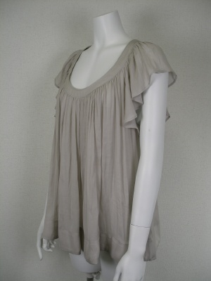 とても柔らかで軽い上質ポリエステルを使用しています。やや透け感があり、脇の部分も開いているのでキャミソールなどを重ね着して。