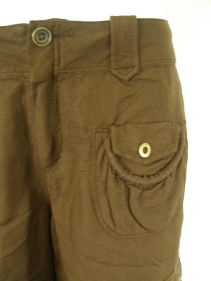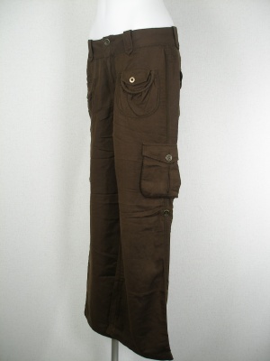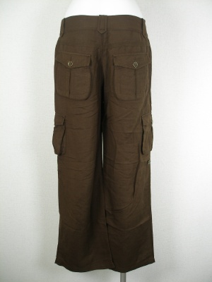 綿・レーヨンの落ち感のある太めストレートパンツ。裾をロールアップしてボタンで留めるとクロップド丈に。