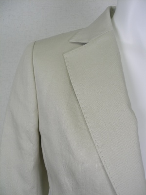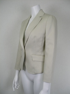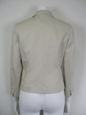 麻と綿の夏らしい素材。すっきりベーシックなデザインで合わせやすいジャケットです。お出かけ用にはもちろん、デニムなどカジュアルアイテムともよく合います。