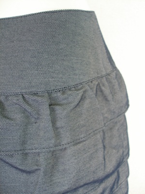 デニム生地のような素材のティアードスカートは張りがるのでフワッとボリュームがいい感じにでます