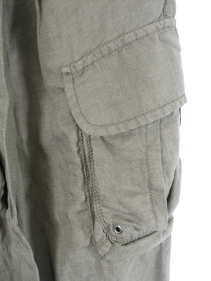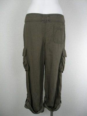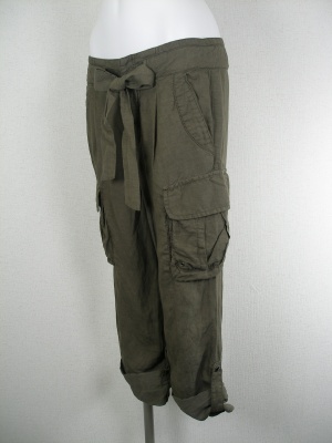 カーゴパンツでややゆる目のデザイン、裾をロールアップして着用 サッシュベルトはリボン結び
