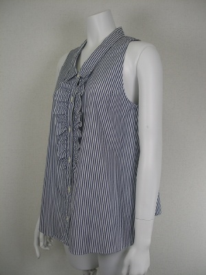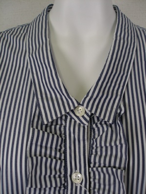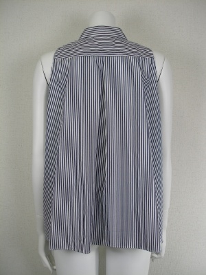 コットンのパリッとした素材のAラインシャツ。後ろもタックによって広がりふんわりしたシルエットに。ネイビー×白のストライプ。