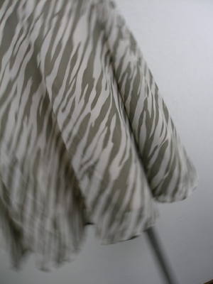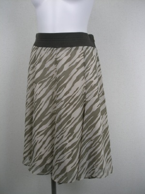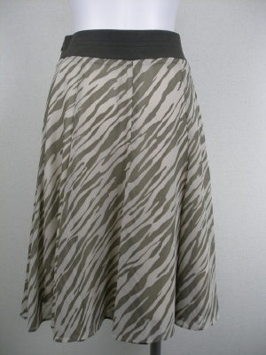 8枚はぎになって裾にボリュームを出したフェミニンなスカート ウエストに幅広ゴムを使用、脇ファスナーあり 裏付き・・丈58cm