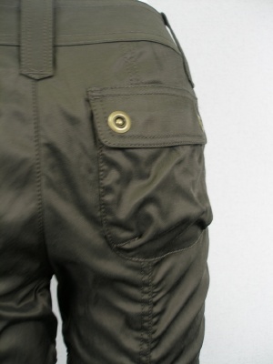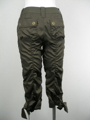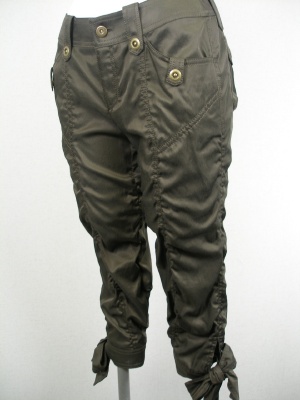 スキニー風のパンツで前、後ろ、サイドにギャザーを付けてクシュクシュ感を出してます、裾のリボンがキュートで甘口