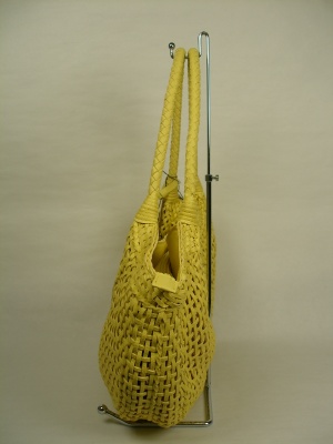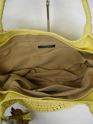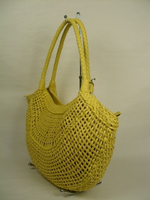 メッシュの中側にスパンコールが重ねてメッシュから所々キラキラ見えます。幅が47cm、もち手無しで高さ27cmとやや大きく感じますがマチがなく肩にかけて納まりのよい大きさ、天ファスナー