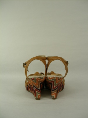 ソール部分がオレンジ、カーキ、赤などのカラフルな柄になっているサンダルです。