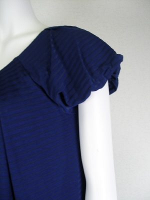 レーヨン系のとろりとした落ち感が来ていて気持ちがよい 襟ぐりからタック寄せのおかげでふんわりとボディーを包んでくれる 袖口はバルーンになってます、裏付き