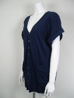 アメリカ製、ベルベットの特徴は生地の肌触りの良さです。 こちらのビッグカーディは脇のポケットが大きいつくりのようでボディに張り付いたような納まりのいいデザイン、袖はロールアップしてトップで留めてあります