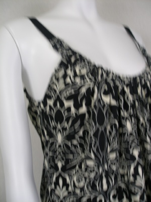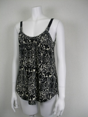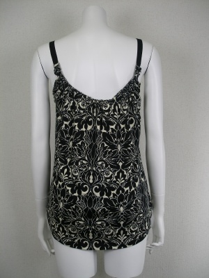 アメリカ製、胸元にゴムギャザーが寄ってる、トロンと下に落ちるのでシルエットが隠れる、