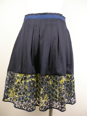裾がカットワークになっててかなり凝った生地を使用 タック寄せでボリュームを出してます、裏地が黄緑色