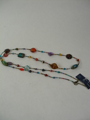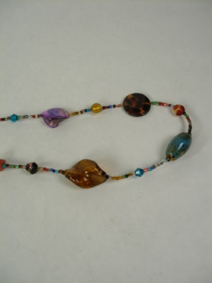 グラスビーズとプラスチック使用、一連もキレイですが2重にしてもいいですね。マルチカラーなのであわせやすいです。