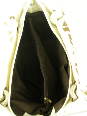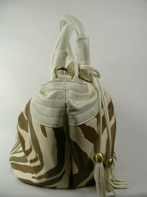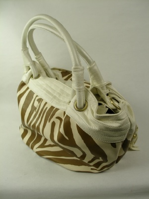 天ファスナーで中の間仕切りもファスナーが付いてポケットになります。ゼブラ柄プリントで、皮は合皮