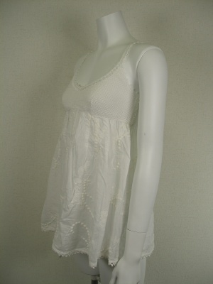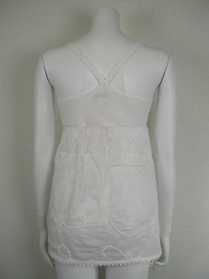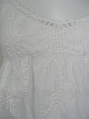 バストから上の部分はニットの異素材使いチュニック。下の部分には同色の刺繍入り。どちらの素材も綿100%でナチュラルな風合いです。