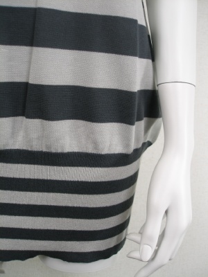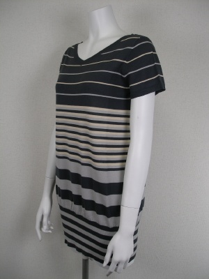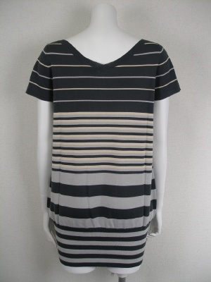 綿100%でサラサラした素材のロングニット。前後で同じ開き方のVネック。裾15センチはリブなのでフィットします。