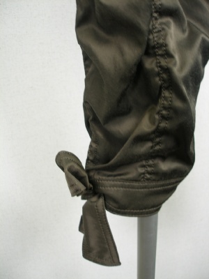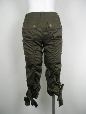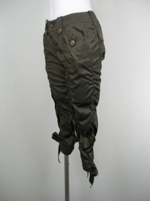 スキニー風のパンツで前、後ろ、サイドにギャザーを付けてクシュクシュ感を出してます、裾のリボンがキュートで甘口