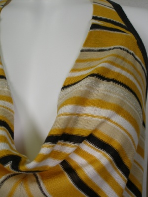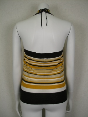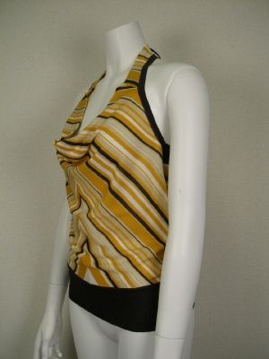 シルクと麻の涼しげホルターネックニット。サラサラした柔らかい素材なのでフロントのドレープがキレイ。インナーはベアトップがオススメです。