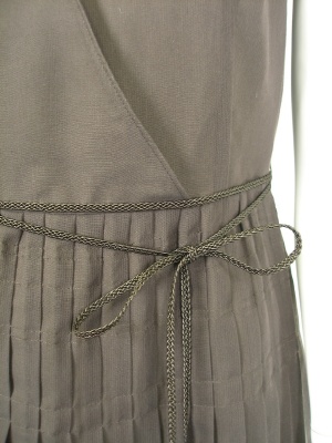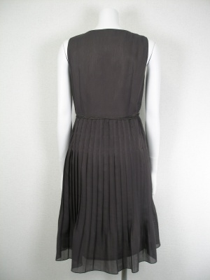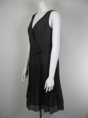 透ける素材の濃いブラウンが夏に映えるワンピース。Vネック部分は縫い付けなので1枚でもOK。裏地はキュプラ。