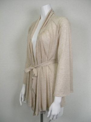薄手で滑らか、伸縮性もあるドレープカーディガン。ベルトは後ろで結んだり取り外してもOK。夏の冷房、日焼け対策にも。
