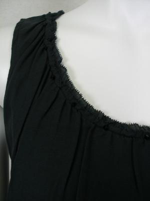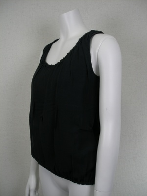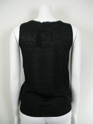 麻100%のニットで、前身ごろはニットの上に別布を重ねてあります。別布はコットン56%・シルク44%でほんの少し透ける素材です。アンサンブルになるカーディガンもございます。