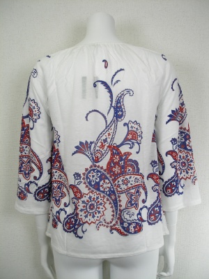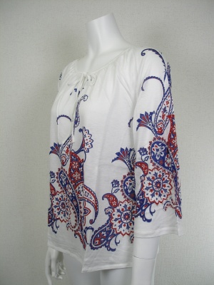 リヨセル70%・綿30%の柔らかく肌触りの良い素材。大きなペイズリーのプリントがエスニック!