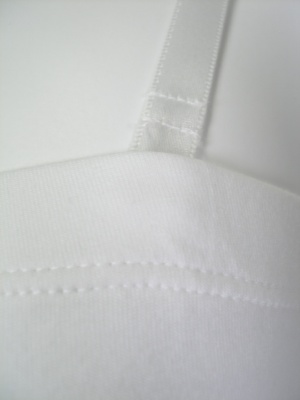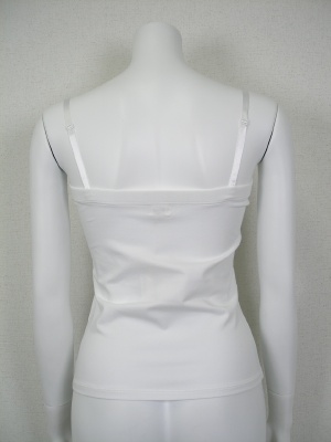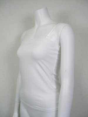 ストラップを外してベアトップとしても。綿95%・ポリウレタン5%のストレッチ素材。ストラップは伸縮性のないサテンで長さ調節できます。