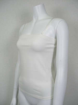 ストラップを外してベアトップとしても。綿95%・ポリウレタン5%のストレッチ素材。ストラップは伸縮性のないサテンで長さ調節できます。