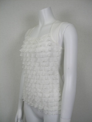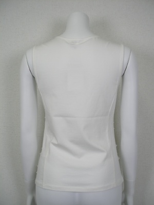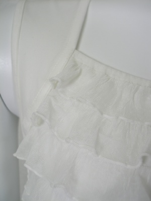 綿94%・ポリウレタン6%でストレッチの効いた素材に、フロントのみフリルを重ねてあります。フリルはポリエステル93%・ポリウレタン7%の柔らかな素材。