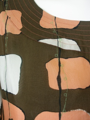 綿62%・シルク38%のやや光沢のある薄い素材。裏地なしで透けますので、レギンスなどのパンツを重ねるか、ペチコートをお召し下さい。