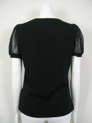 ストレッチ素材のカットソーとチュールの組み合わせがエレガント。チュールはシワ加工で、シルバーのスパンコールを使い華やかなイメージ。