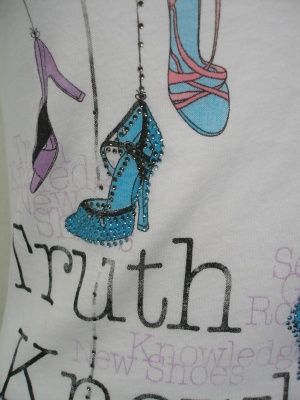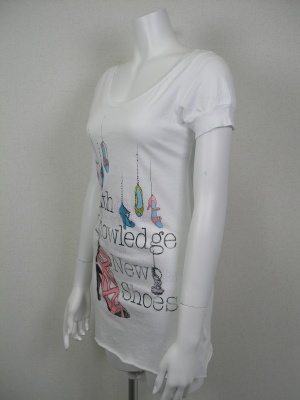 アメリカ西海岸のブランド・・ジェイクス 靴の図柄がポップな感じ・・所々にラインストーンでキラキラ感を出す タイトなロングカットソー。着丈・・71cm